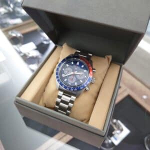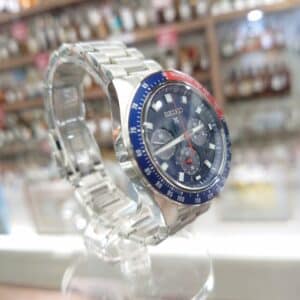 ネイビー×レッドの2色ベゼルが目を惹く